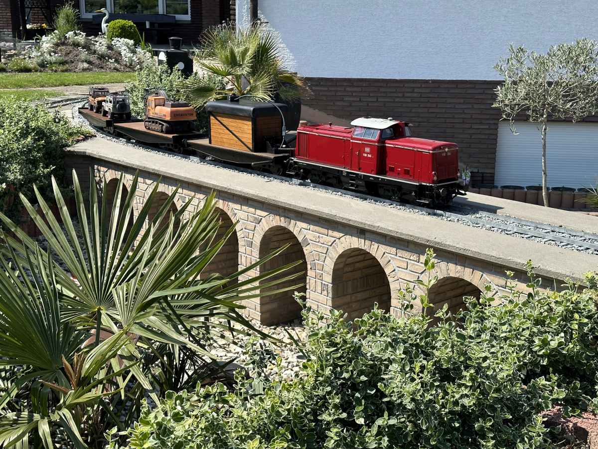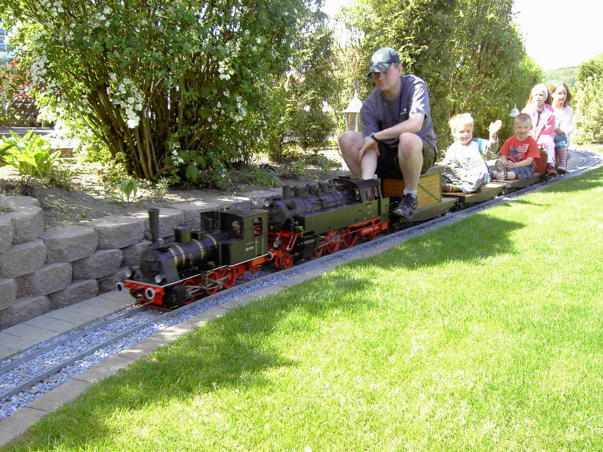 Das Interessante an einer Eisenbahn in dieser Baugröße ist, dass Personen ebenso wie der Lokführer auf den Wagen hinter den Loks mitfahren können. Die Modelllokomotiven haben eine doch recht beachtliche Zugkraft und sind in der Lage, Züge mit einem Gesamtgewicht von über einer Tonne zu befördern.